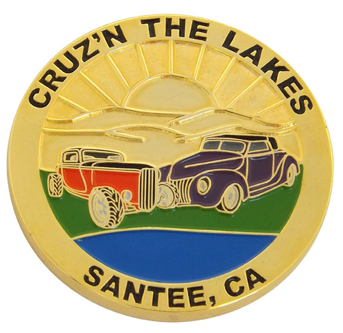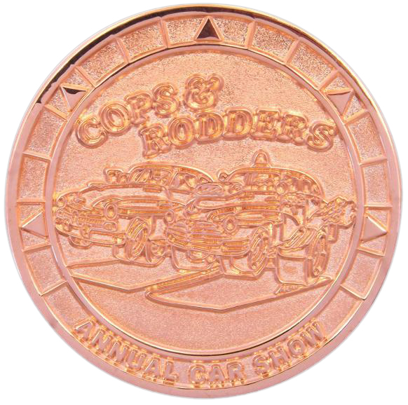 Our standard coin is the Presentation Coin, measures at 45mm (1-3/4 in.). Another popular size is the Pocket Coin, measures at 38mm