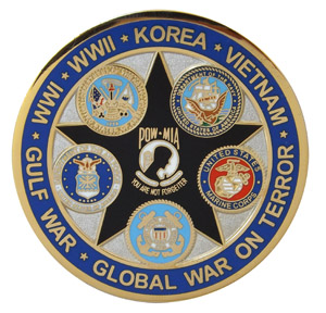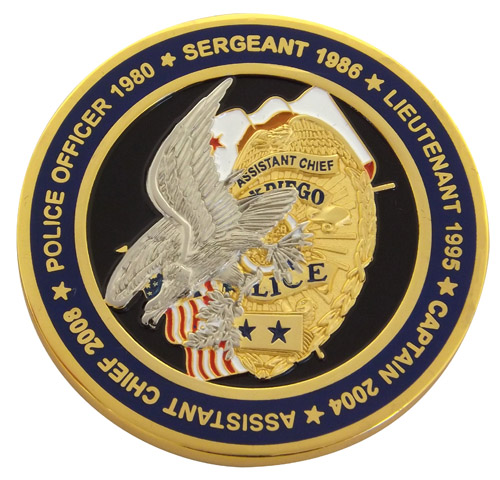 Challenge coins have long been a part of US military tradition. Legend has it they got their start during WWI when an allied pilot was shot down behind enemy lines and had to rely on his squadron specific coin to ensure safe passage back to his base. Since then, the coins have found their way into other professions. Today, these highly collectable trinkets are widely distributed by members of law enforcement, fire fighting and paramedics. In the last few years the business world has begun to notice the value of these highly collectable coins and they are fast becoming symbols of corporate loyalty, professional accomplishments and or a unique piece of advertising. (All Coins Depicted Measure 45mm.)