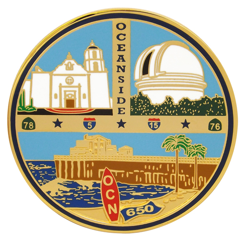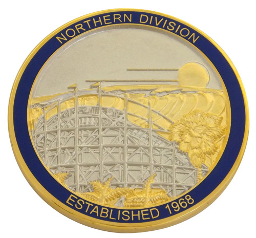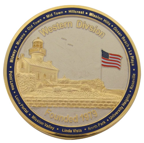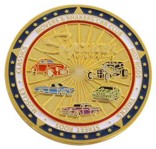 Our standard coin is the Presentation Coin, measures at 45mm (1-3/4 in.). Another popular size is the Pocket Coin, measures at 38mm