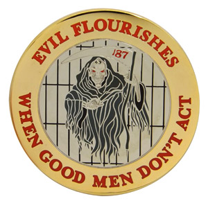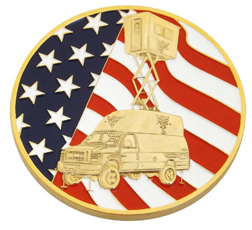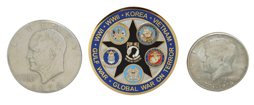Challenge coins have long been a part of US military tradition. Legend has it they got their start during WWI when an allied pilot was shot down behind enemy lines and had to rely on his squadron specific coin to ensure safe passage back to his base. Since then, the coins have found their way into other professions. Today, these highly collectable trinkets are widely distributed by members of law enforcement, fire fighting and paramedics. In the last few years the business world has begun to notice the value of these highly collectable coins and they are fast becoming symbols of corporate loyalty, professional accomplishments and or a unique piece of advertising. (All Coins Depicted Measure 45mm.)
