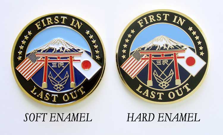 As you can see from the side by side comparison, the end result is almost night and day. Hard enamel is far superior! That's why Absolute Victory Insignia will NEVER use soft enamel on any project.